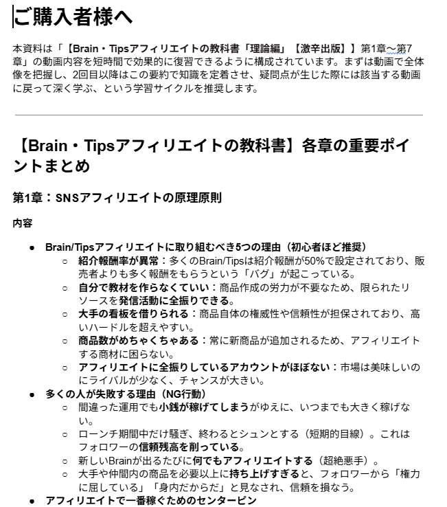 Brain・Tipsアフィリエイトの教科書「理論編」とは?教材の全体像をレビュー