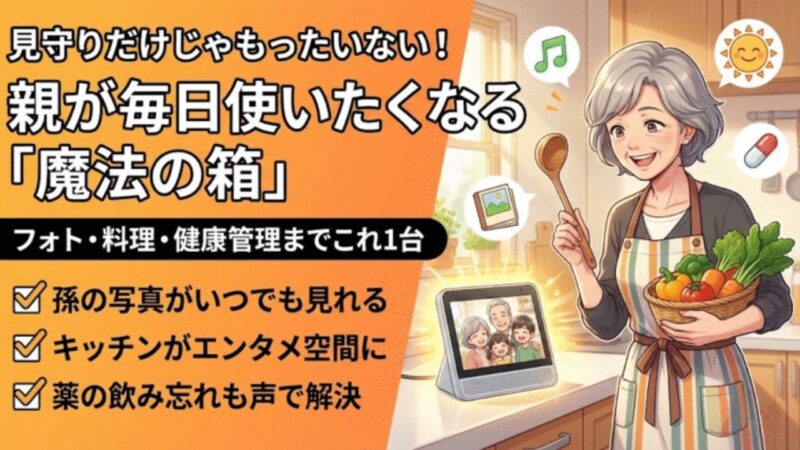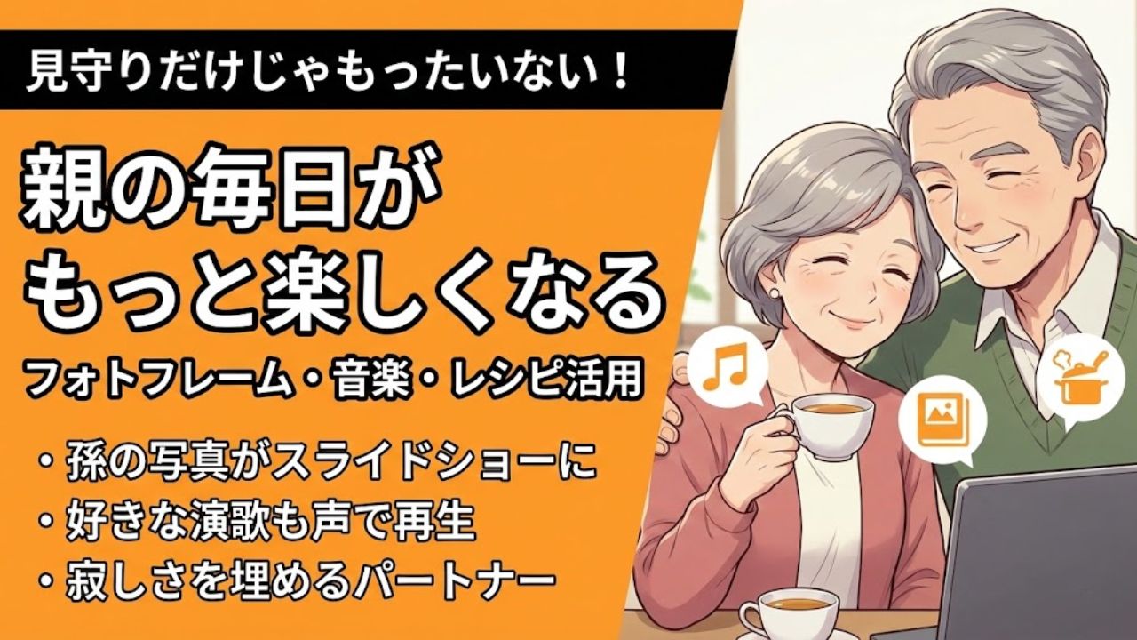 - 導入のコツ:「監視」ではなく「無料のテレビ電話」や「フォトフレーム」として贈るのが正解。