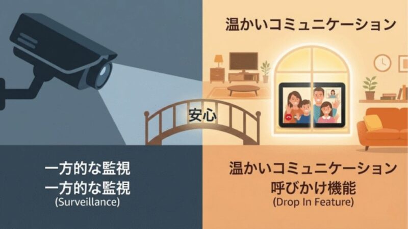 一方的な監視は相手の尊厳を傷つけますが、コミュニケーションを前提としたEcho Showなら、プライバシーを守りつつ愛情を届けられます。