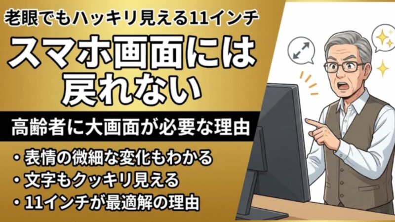 - 老眼でも安心! 11インチの大画面と、声だけで操作できるバリアフリー設計の秘密。