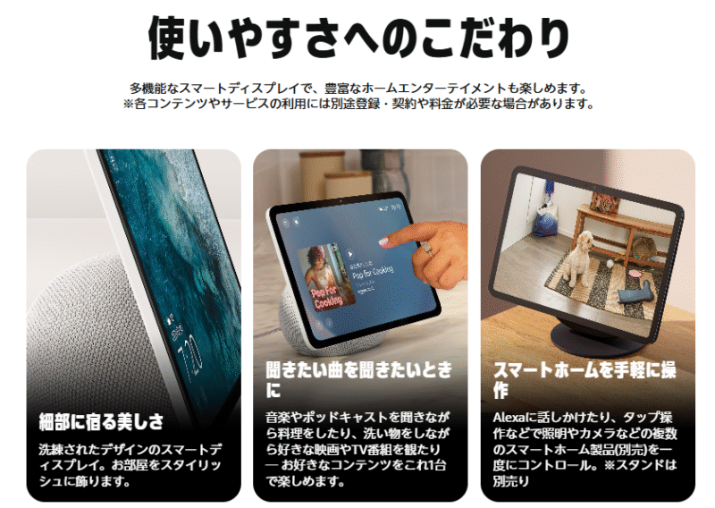 - Echo Show 11:卓上設置が可能で、視認性も確保できる最適解。