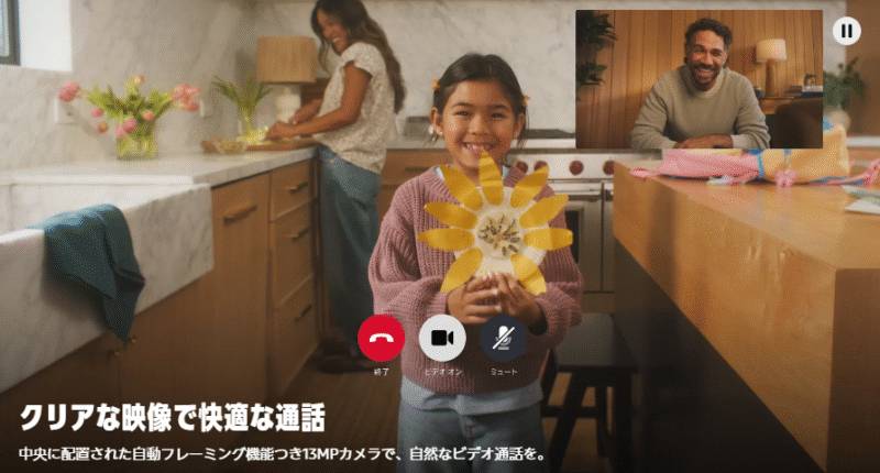 | 通話体験 | 顔の一部しか見えないことも | 表情や背景まで鮮明に映る |