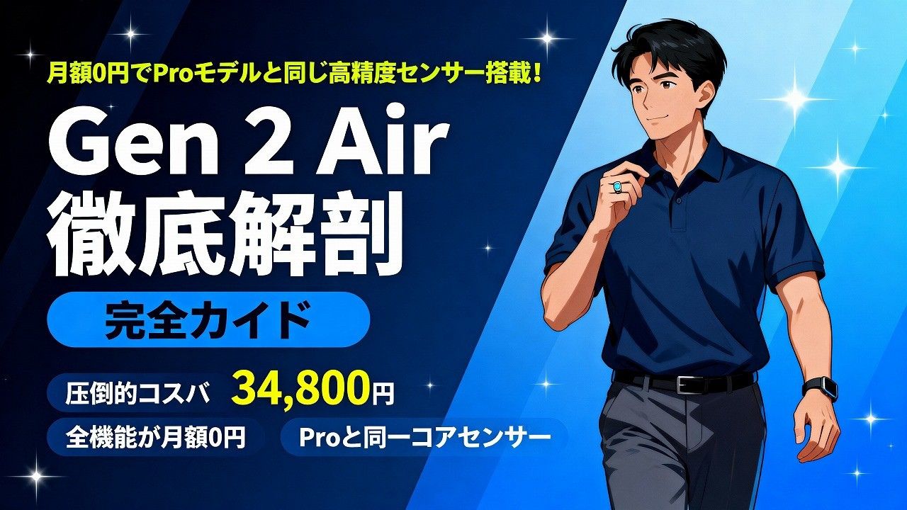 RingConn Gen 2 Airは、Proモデルと同等の健康センサーを搭載しつつ価格を抑えた新モデルです。月額費不要でAI機能もすべて使えるため、コスパ重視の方には特におすすめ。