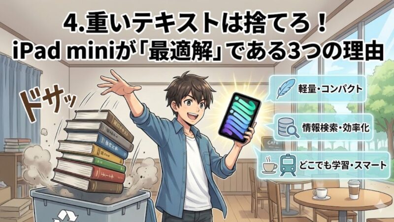 重い参考書を持ち歩くのはもう終わり!iPad miniがあれば、満員電車が最強の書斎に変わりますよ。