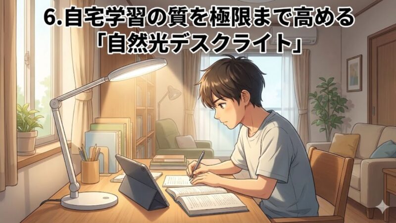 自然光の場合、ギラツキが比較的抑えられだけでなく、色味も鮮やかに見えるので、勉強する環境にはオススメです。詳細は以下の記事で解説しています。また、ランキング形式でデスクライト照明の紹介をしているよ!