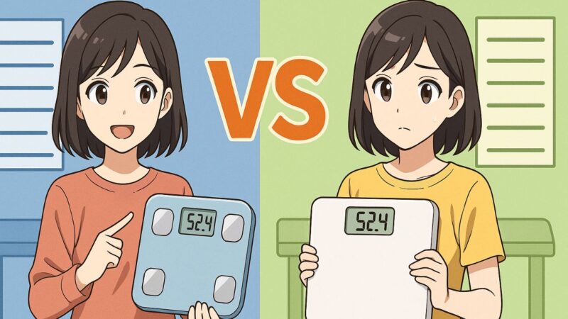 体組成計モデルは、体脂肪率・筋肉量・内臓脂肪など15項目を測定できる多機能タイプ。体重計モデルは体重とBMIのみのシンプル設計です。目的に応じて選びましょう。