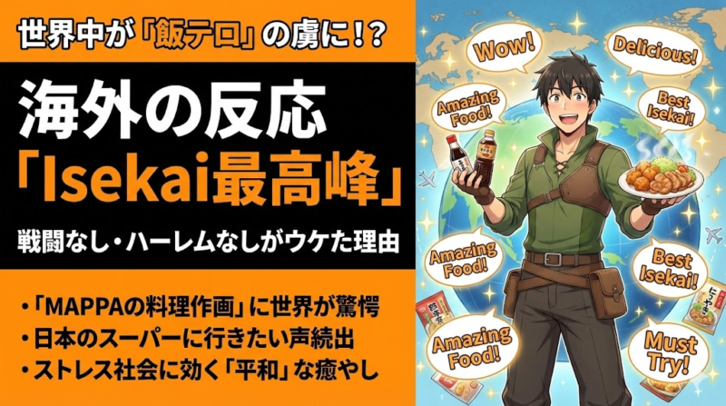 「Isekai(異世界)」ジャンルの中でも、特にユニークで平和な作品として愛されています。
