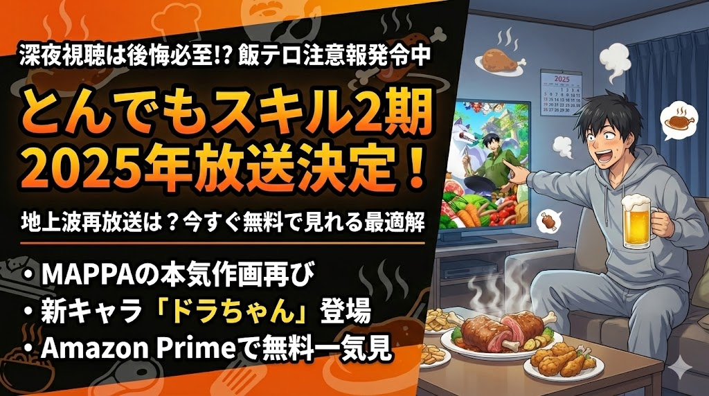 この記事では、ネット上の情報を徹底調査し、2期の放送時期予想から、今すぐ無料で見られる配信サイト、そしてファンなら知っておきたい「制作の裏側」や「再現レシピ」までを120%の熱量で解説します。